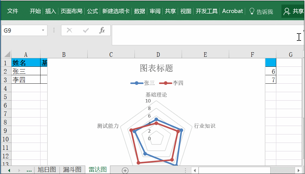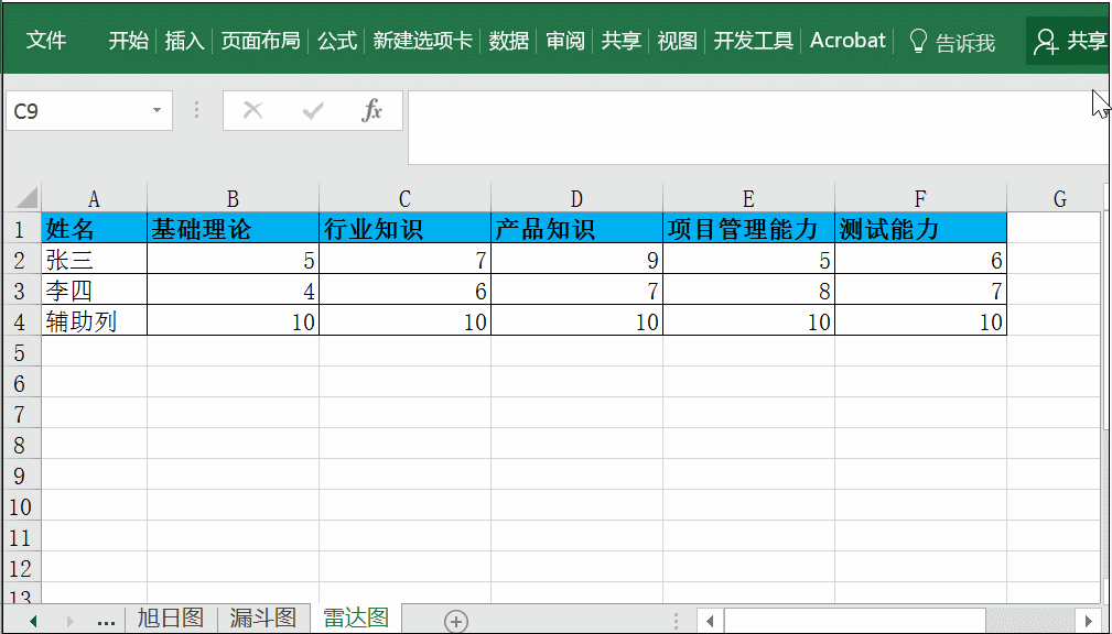 在制作雷达图时,我们有时会添加一些辅助列,从而使图表更加清晰直观,但在使用“填充雷达”时,你会发现自己的主要数据被覆盖了,这时该怎么处理呢?