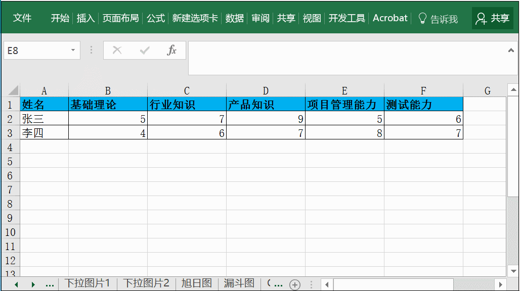 比如说帮主想对以下图表内容做一个雷达图,该怎么做?