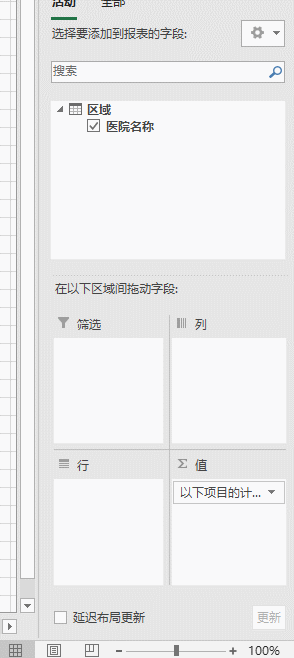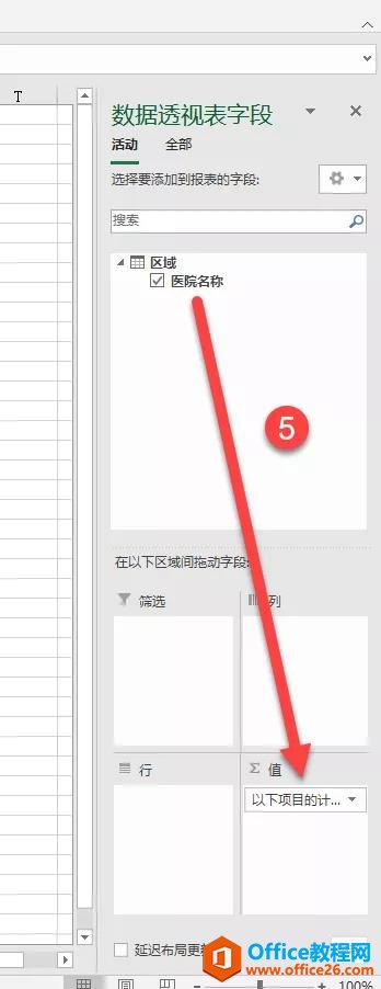 接着将医院名称拖拽到值计算字段,下图5处。