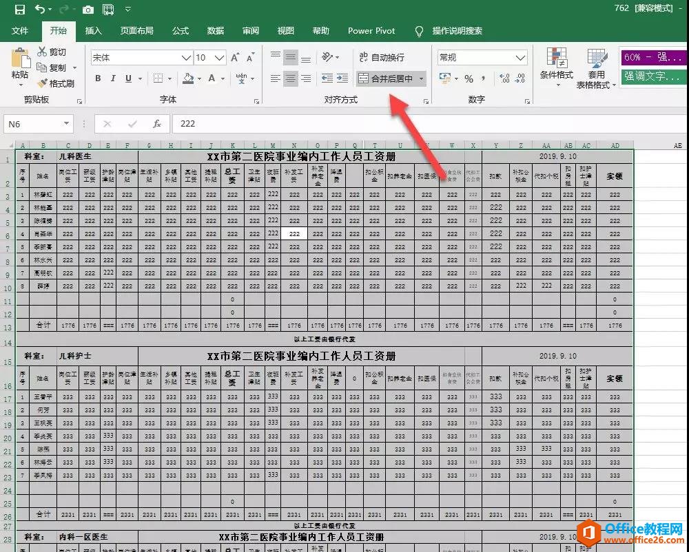 根据这位小伙伴们设置的要求,不能几行的删除来操作,必须要用快速的方法来搞定!那就是排序!具体操作如下: 第一步,选中所有的表格区域,然后点击“合并后居中”按钮,取消所有的表格合并单元格。