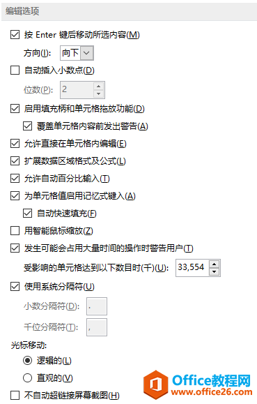 本文摘自:https://www.office26.com/excel/advanced-settings-all-options.html,感谢原作者