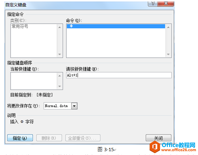 在键盘上按下要设置的快捷键后,单击“指定”按钮即可为选定的符号指定一个自己好记忆、好使用的快捷键。