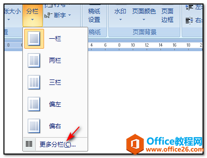3、点击分栏命令以后,在弹出的下拉选项中点击选择”更多分栏”的命令;
