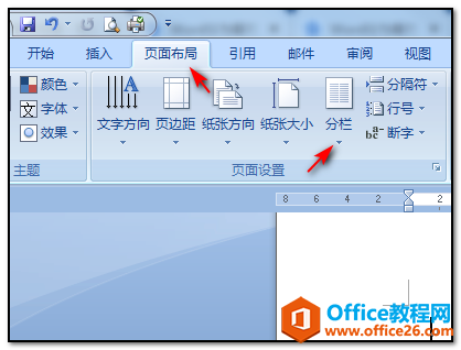 2、双击打开word文档软件以后,在界面的上方找到并点击页面布局下的”分栏“命令;