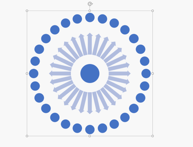 插入完毕后,发现这都是大的圆形,与目标的小星点还有一定的距离。所以接下来步骤很关键,第三步,在SmartArt工具-设计-转换中将其转换为形状。