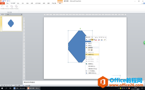 第一步:打开PPT2010,从“形状”中插入一个“菱形”形状。