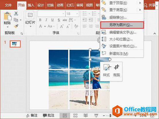(4)在图片上单击鼠标右键,执行两次【组合】-【取消组合】命令,即完成九宫格图片制作,然后另存图片即可随意发朋友圈发。