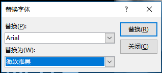 2、打开“替换字体”对话框,选择需要“替换”的字体,然后设置“替换为”另一种字体。即可将PPT中任意字体替换为我们想要的字体啦~