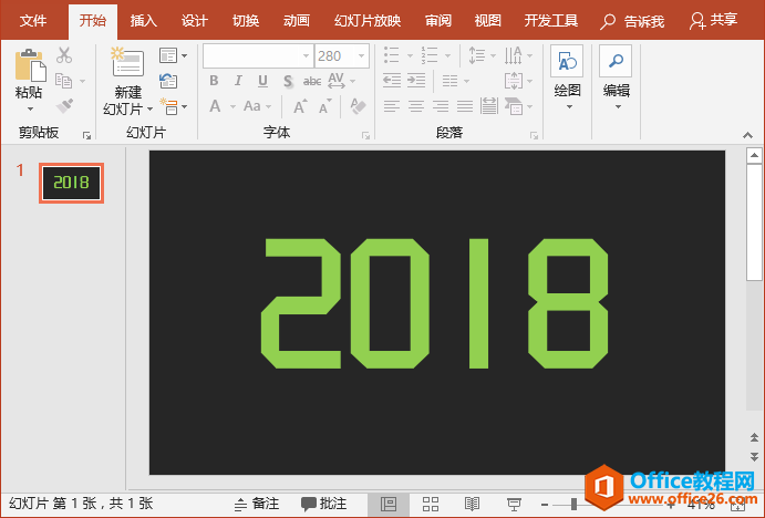 申明:汉仪晓波折纸体字体,设计师:胡晓波。本教程使用字体(非商用)仅供学习,侵删!(2)在PPT里输入文字,如:2018。然后设置“字体“为”汉仪晓波折纸体“。字号及颜色可根据喜好进行设置,如下图所示。(注意:如果安装好字体后,没有发现该字体,则需要重新启动一次Powerpoint。)