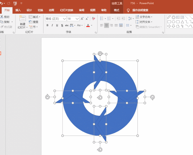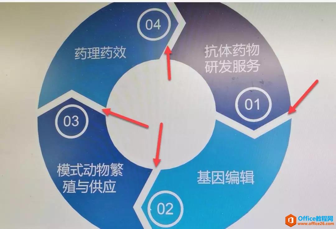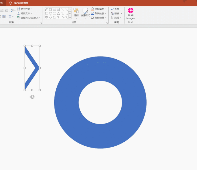 接着将新的箭头形状与环形图进行拆分操作,注意看箭头放置的四个位置,其实不用那么精准,大概的位置即可。