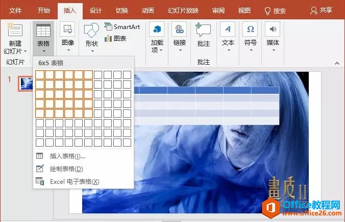 (2)点击【插入】-【表格】按钮,插入5列6行表格。