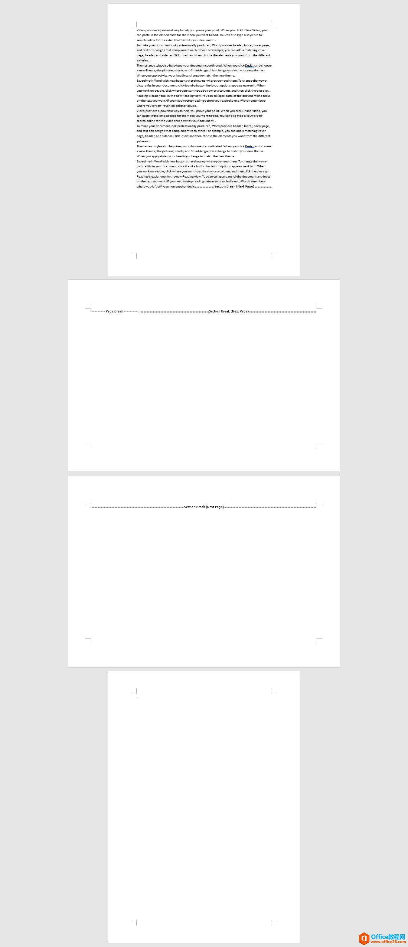 新建一个Word文档,将光标放在段落的末尾,然后在页面布局(Layout)-分节符(Breaks)中,插入分节符(Section Breaks)-下一页(Next Page)。如动图的操作: