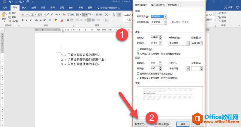 是不是一个非常肯定坑爹的地方,进去后,将默认制表位的距离改为0即可。注意下图的箭头处。