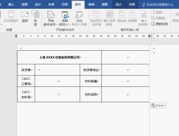 第二步,载入Excel数据,注意Excel文件不要用Excel打开,利用“插入合并域”按钮,插入对应的Excel字段。注意看动图操作。