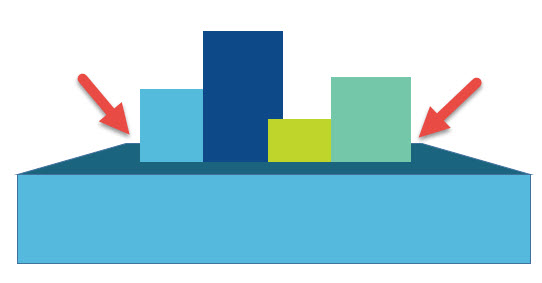 批量选中这些“柱形图”,去掉轮廓,然后调整他们的中心位置。注意箭头处显示两端的间距。
