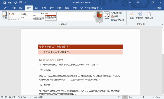 如果你对内置样式不够满意,可点击“设计”选项卡右侧的颜色、字体、段落间距、页面颜色等可批量更改文档排版。