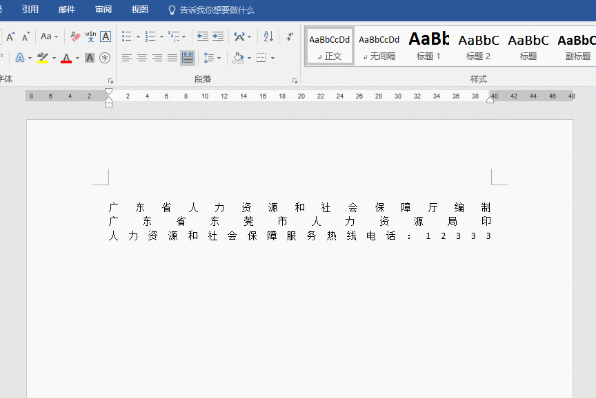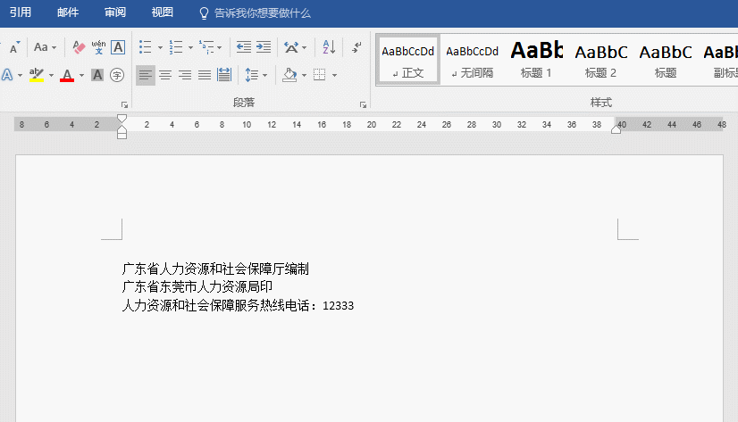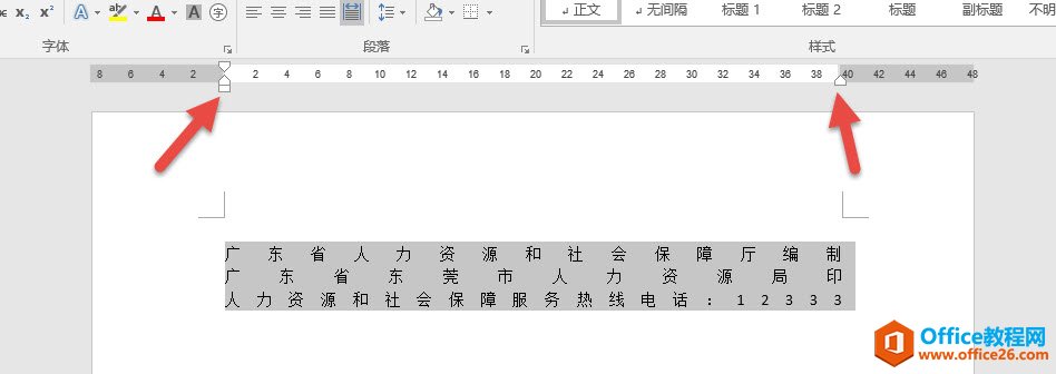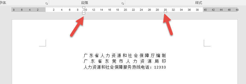 那这个思路就简单了,无非就是“压缩”调整两端的左右段落缩进符。那么问题来了,应该如何缩进才能保持这三段内容是在版心的中间呢?