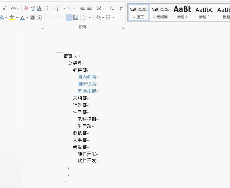 1、先用缩进命令调整部门层次关系;