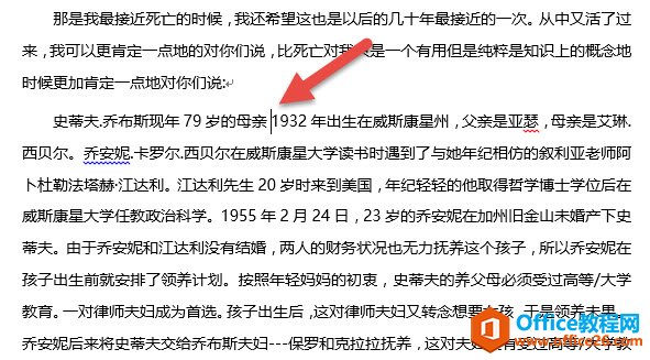 设置完毕只需按住Ctrl键,在单击“点击参见”这四个字就会跳转到乔布斯母亲 段落介绍位置。