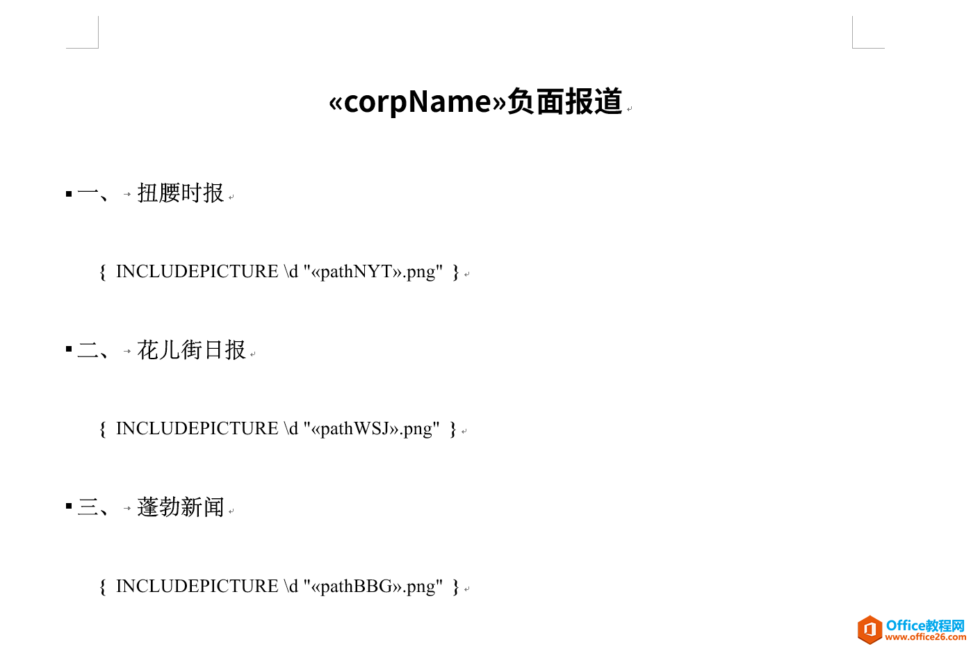 MERGEFIELD域告诉 Word:「把我换成数据源中corpName变量的内容」。回到我们的问题,图片的插入是由