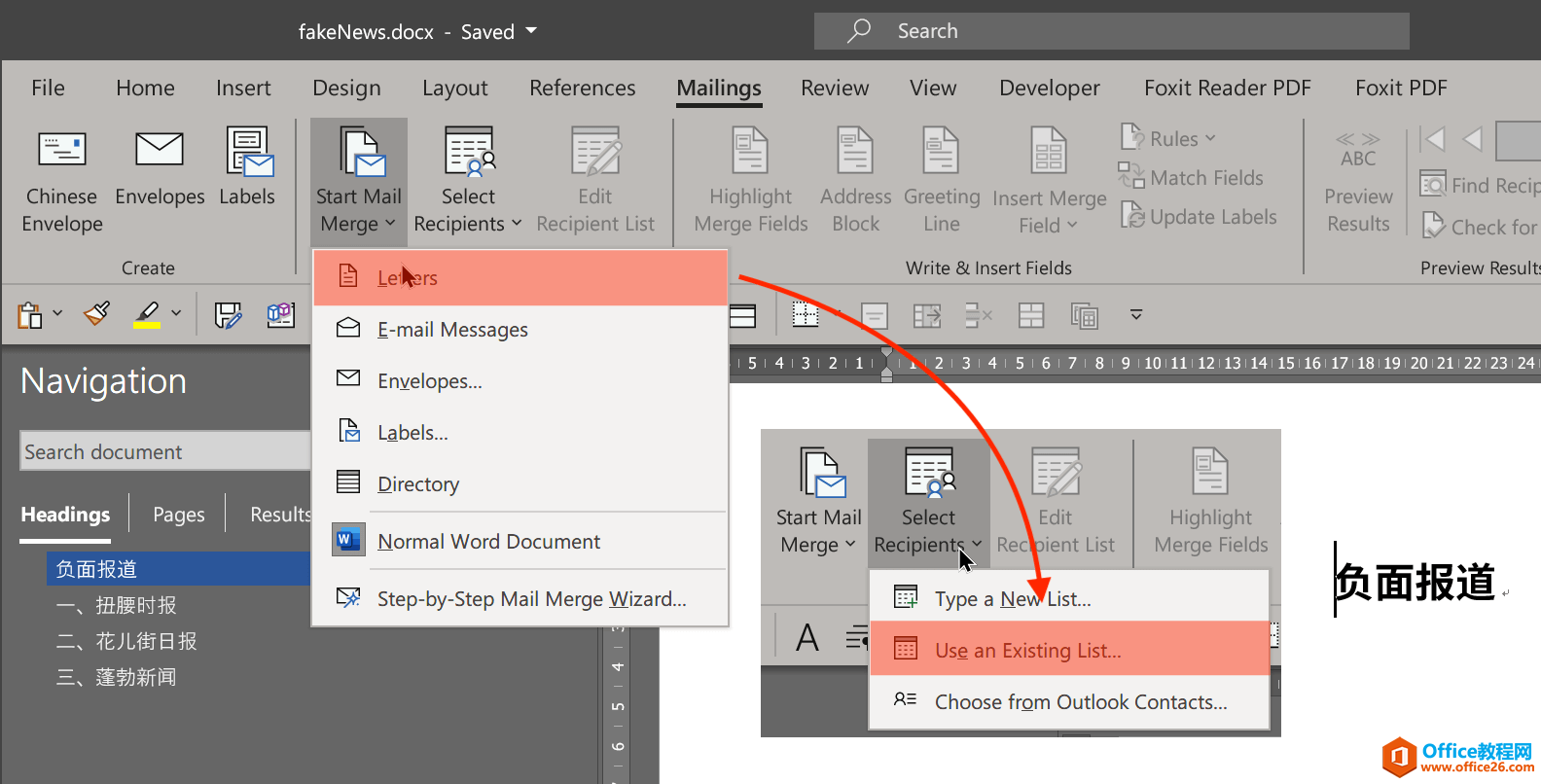 fakeNews.docx),在其中填好最终所需成品中共同的部分,并将变化的部分留空。