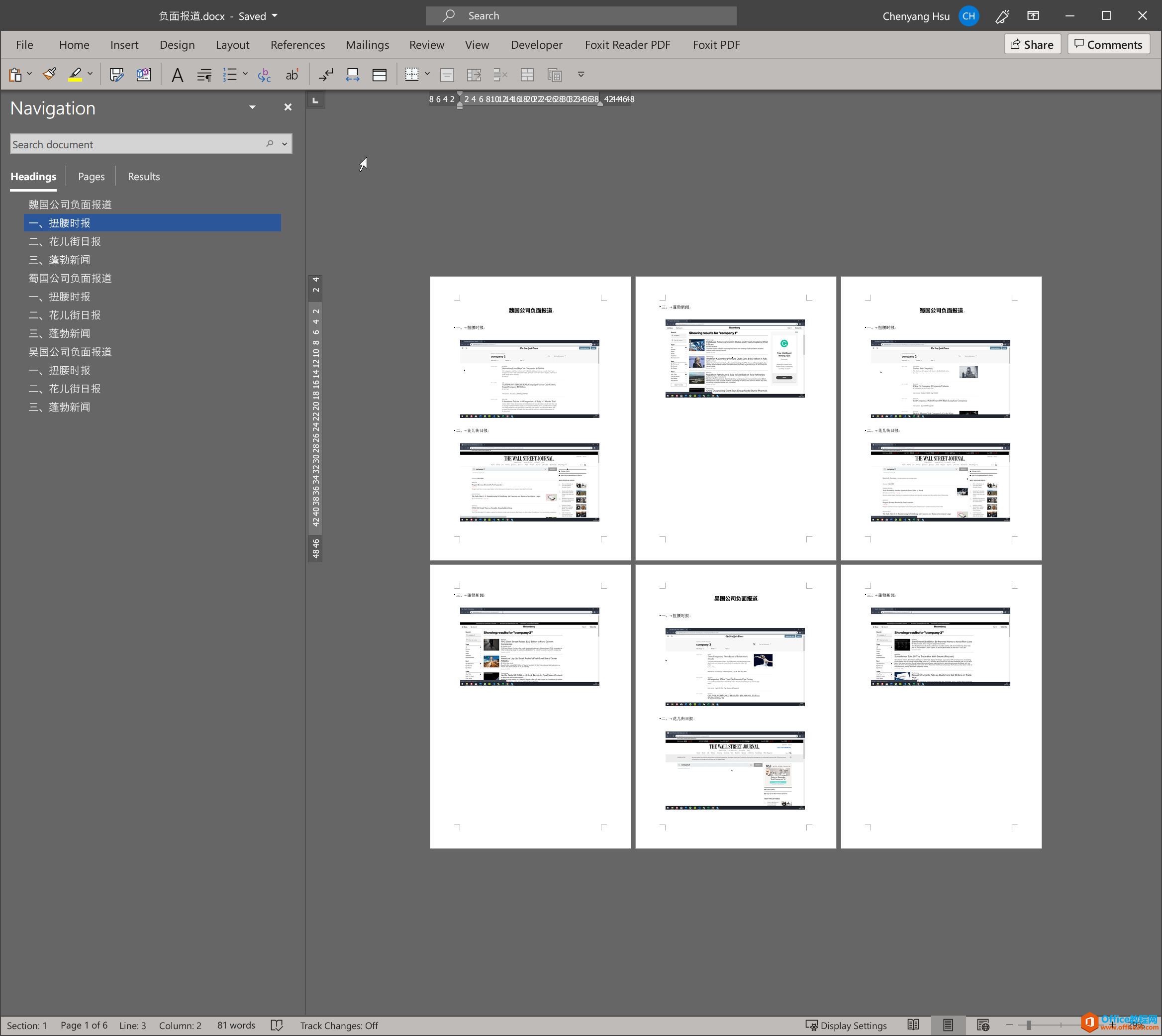 Word 会自动新建一个文档,其中合并了针对每家公司的内容。可以看到,标题的位置已经被更换为各个公司的名称,但截图的位置仍然是空白。这并不是因为操作有误,而是因为我们插入的域还没有更新。