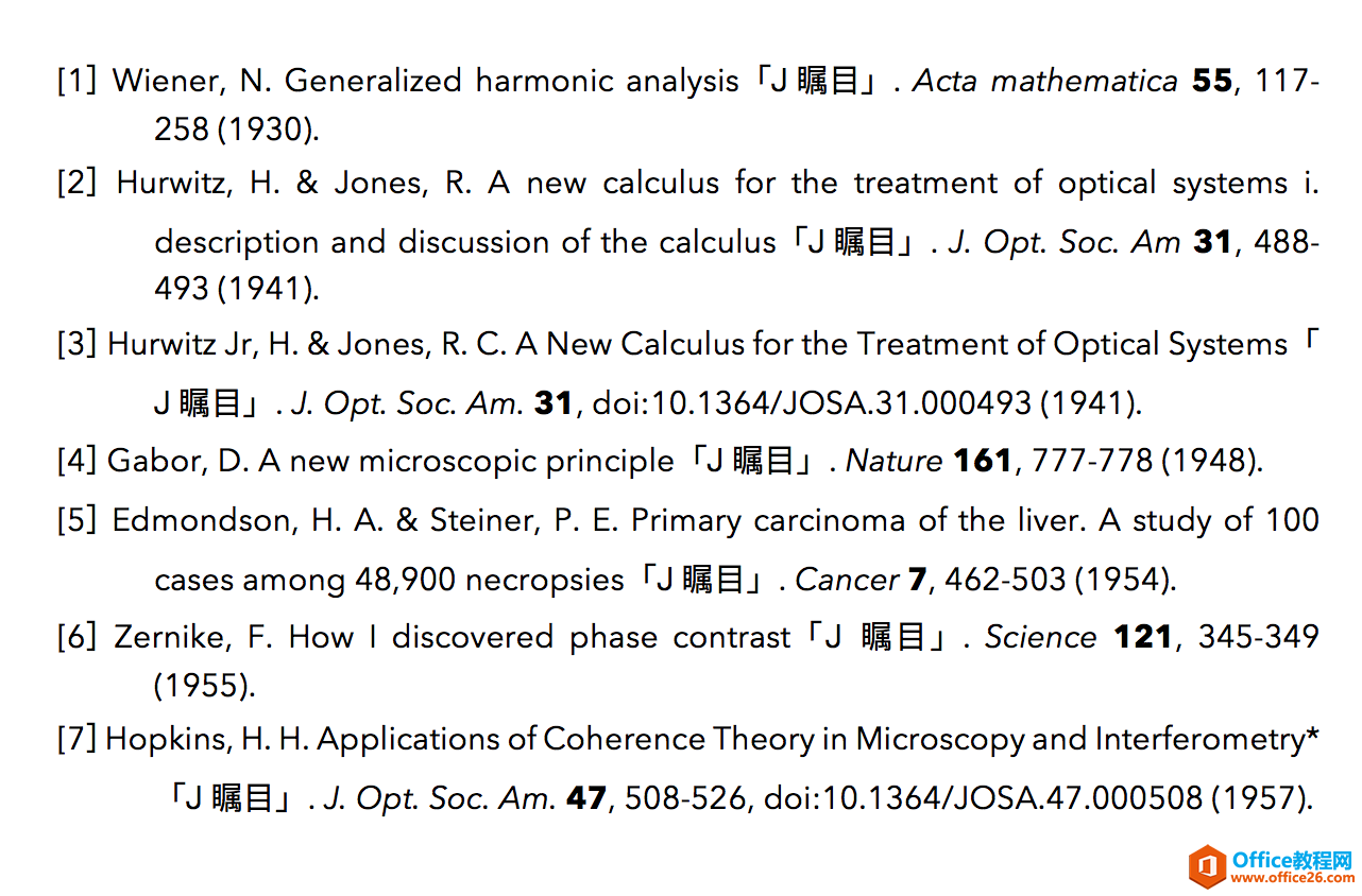 {Wiener, 1930 #581;Hurwitz, 1941 #48;Hurwitz Jr, 1941 #49;Gabor, 1948 #242;Edmondson, 1954 #478;Zernike, 1955 #241;Hopkins, 1957 #162}。