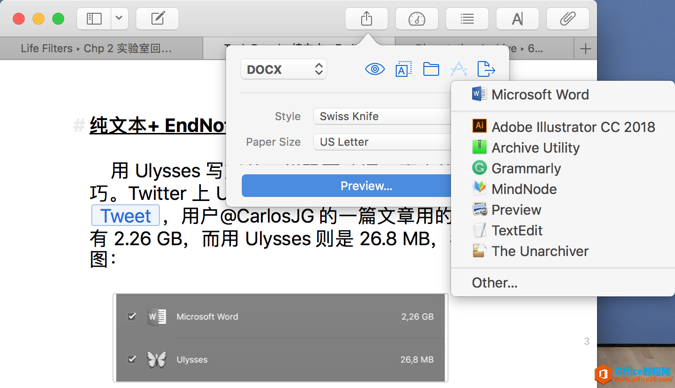 Ulysses 这里的主要作用只是把纯文本转换成 Word 文档,并不十分重要