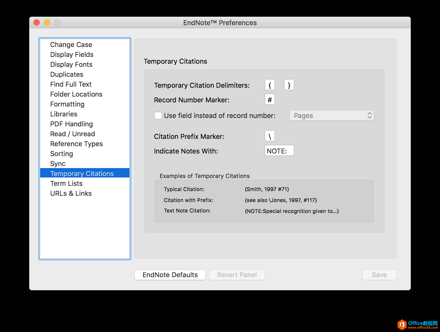 再回到 「EndNote – Preferences」 中,我们还可以设置 Temporary citation 的格式: