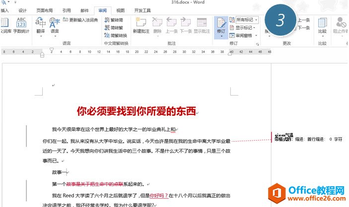 打开一个文档,然后单击“审阅—修订”按钮(下图 1 处),然后开始修改Word文档,就会出现下图的效果。注意左侧会出现竖线,而右侧会出现修改过的格式说明。