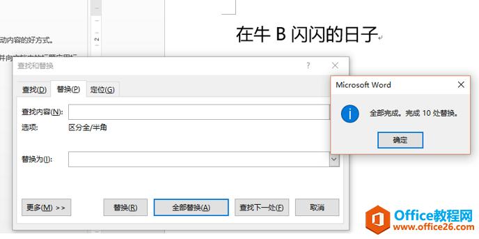 点击下图“全部替换”按钮,完成去除“文字间距”的操作。