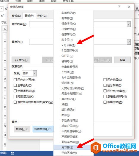 讲到这里,如果你够细致,你会发现前面截图的一个问题,“不对啊,这个特殊格式里面有两个分节符啊。为什么选下面这个?”