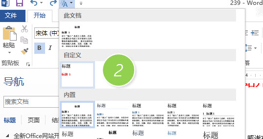 接着赶紧在样式集处加载“工作汇报“样式集,瞬间文档的排版变成了”工作汇报“样式的效果。(下图2处)