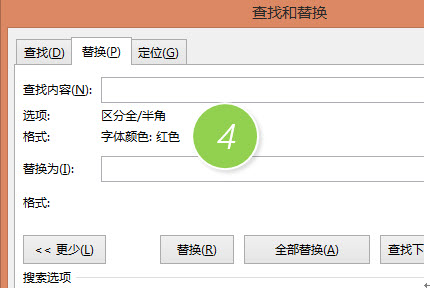 确定后,替换中的查找内容设置为红色。效果如下图4处