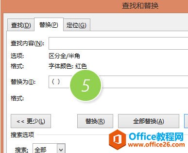 紧接着,将光标放置于“替换为”填写框处,并输入 括号,并把光标放入括号中。下图5处。
