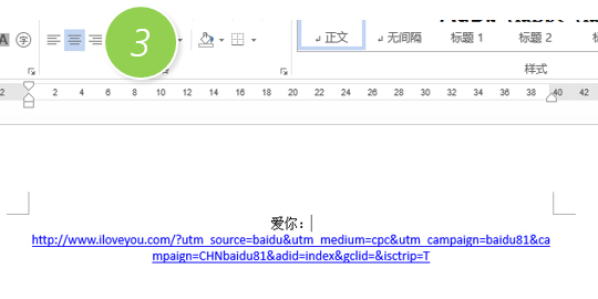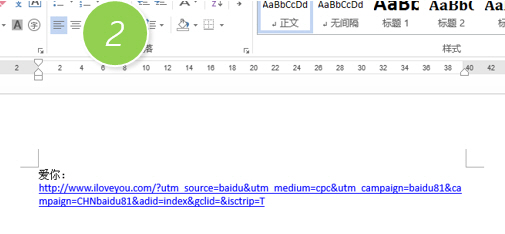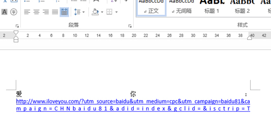 将光标放在 “爱你” 那段,结果发现一个问题,段落的对齐方式居然用的是“两段对齐”。下图1处