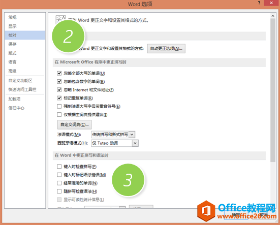 在选项窗口中选择“校队”,在去掉(3处)所有的勾即可。
