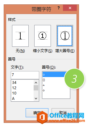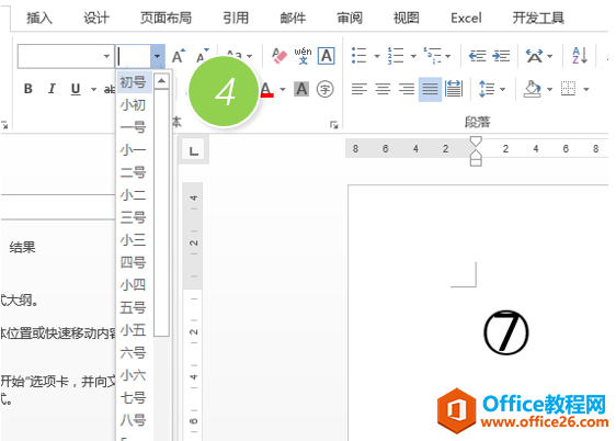 总结:带圈字符适合数字比较小的时候,如果数字本身输入比较大,则带圈字符会出现错位的情况。那如何才能保证大字体数字也能正常圈住呢。方法是应该先按上图设置默认圈效果。然后在利用字号进行放大。(下图4处)