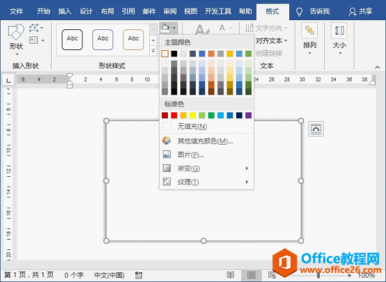 (2)在【格式】-【形状样式】组中设置形状颜色为白色,取消轮廓线。这里为便于查看效果,为矩形添加一个阴影。
