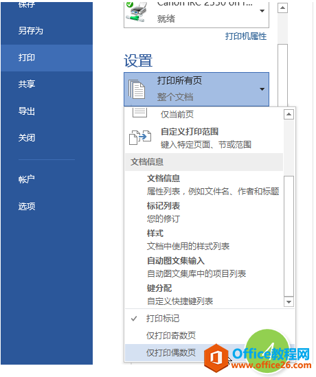 具体方法如下:在“文件-打印”界面,在“设置”中设置“仅打印奇数页”。(下图3处)