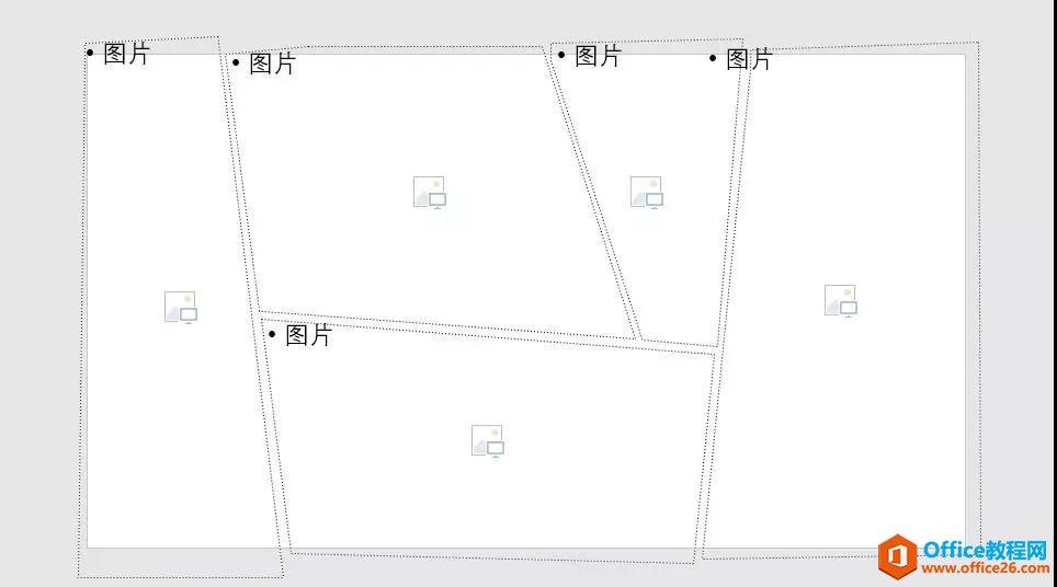 最后就套用版式,也很简单,退出幻灯片母版,再版式中加载“蜘蛛网”版式,然后屁颠屁颠插入图片即可。如果觉得之前的缝隙空得不完美,也没关系。绘制长方形挡住即可。不要告诉我你不会这样操作。