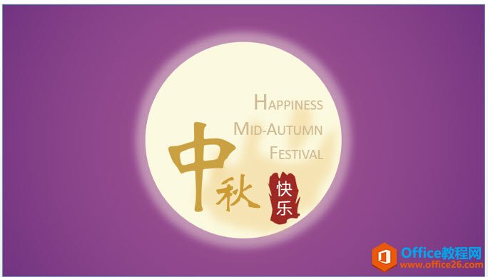 搞定了月亮,剩下的事情就好办了,利用文本框写上英文和中文的中秋祝福内容,放在月亮中,其实不放在月亮上也可以,看大家的设计。牛闪闪“中秋”两个字用了“华文新魏”字体,大家也可以试试看。一个非常不错的中秋贺卡效果就设计好了。