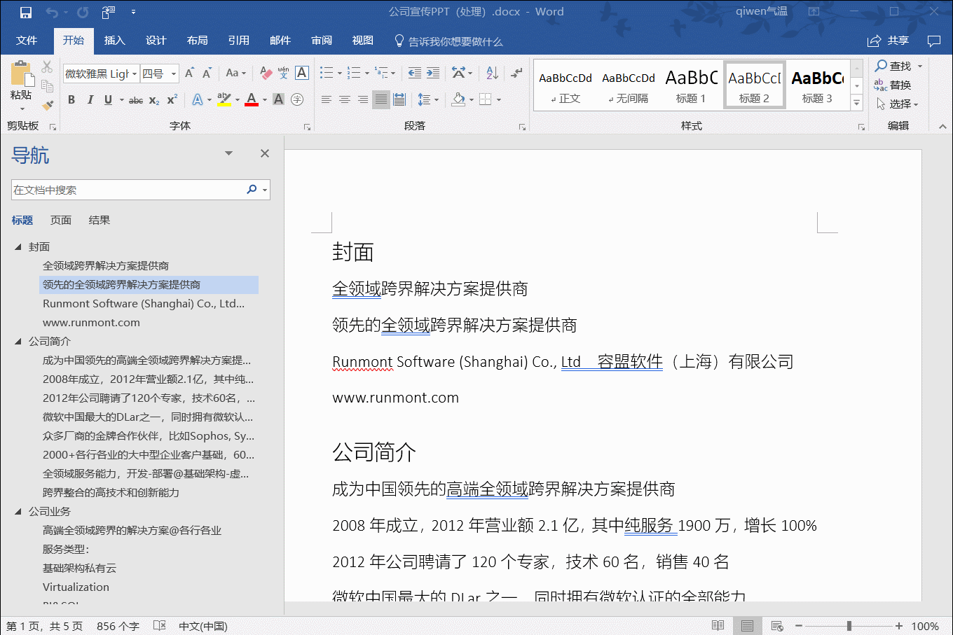 接着打开hilton的模板,同样打开大纲模式,然后将刚刚复制的文档贴进去。
