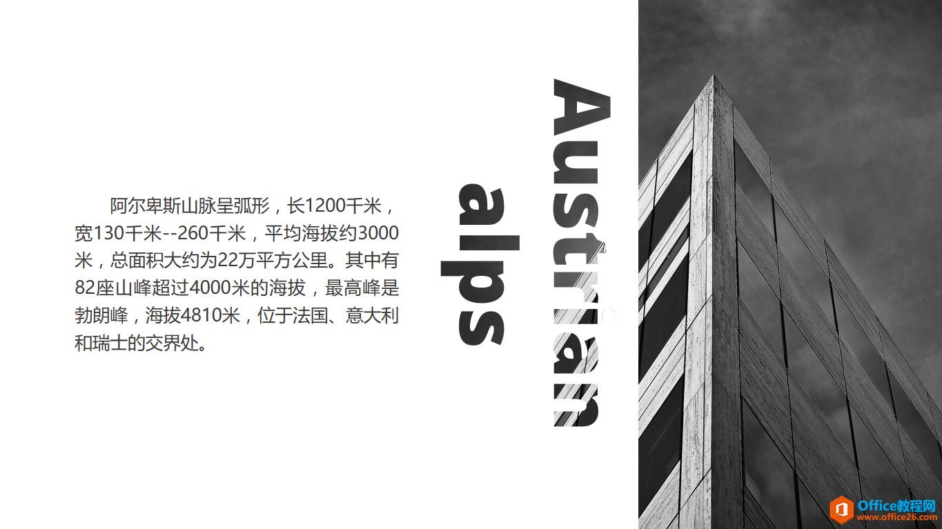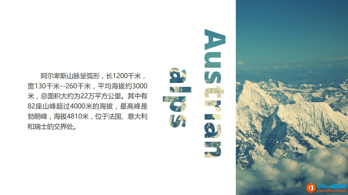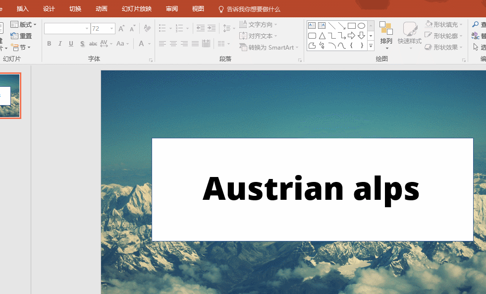 接着用一个新的文本框输入PPT关键词,牛闪闪这里举例的是阿尔卑斯山脉。