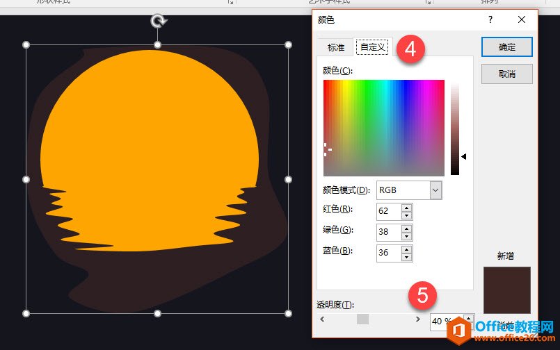 设置成稍暗一点的颜色,并设置大约40%左右的透明效果,点击下图 3 处进去。