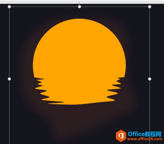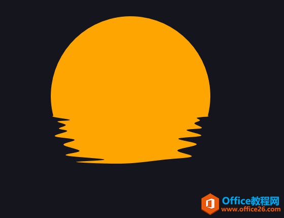将上图蓝色部分颜色也设置成月亮的橙色。效果如下图,实际是想表达月亮在水中扭曲的倒影。是不是有点那样的感觉。