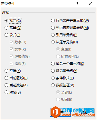 2.选择“批注”条件,点击确定。