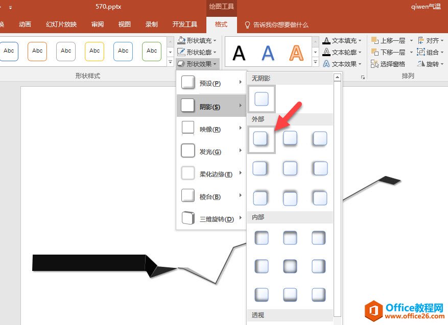 最后设置折线的阴影效果,设置成外部阴影,如下图