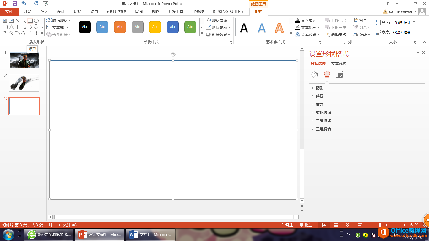 第五步,让这个背景看不到,画一个和幻灯片一样大的白色背景矩形,将背景遮起来;如下图