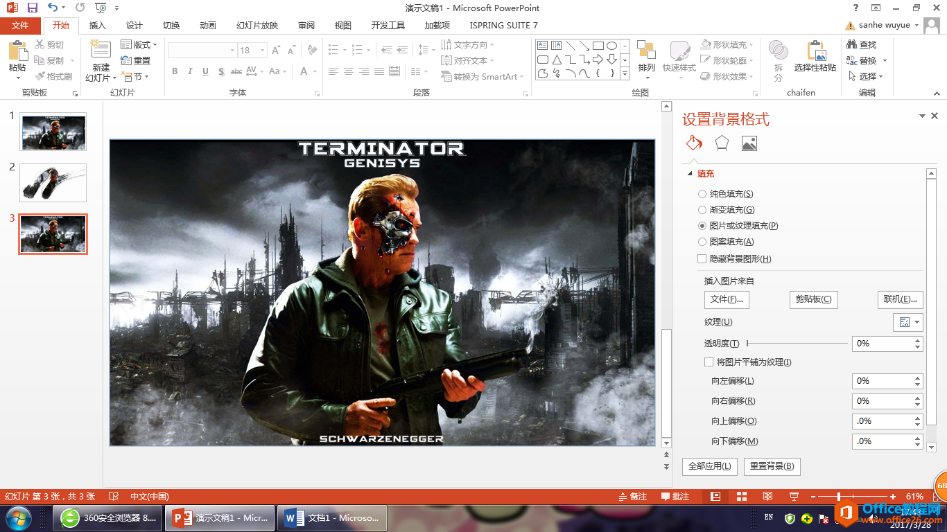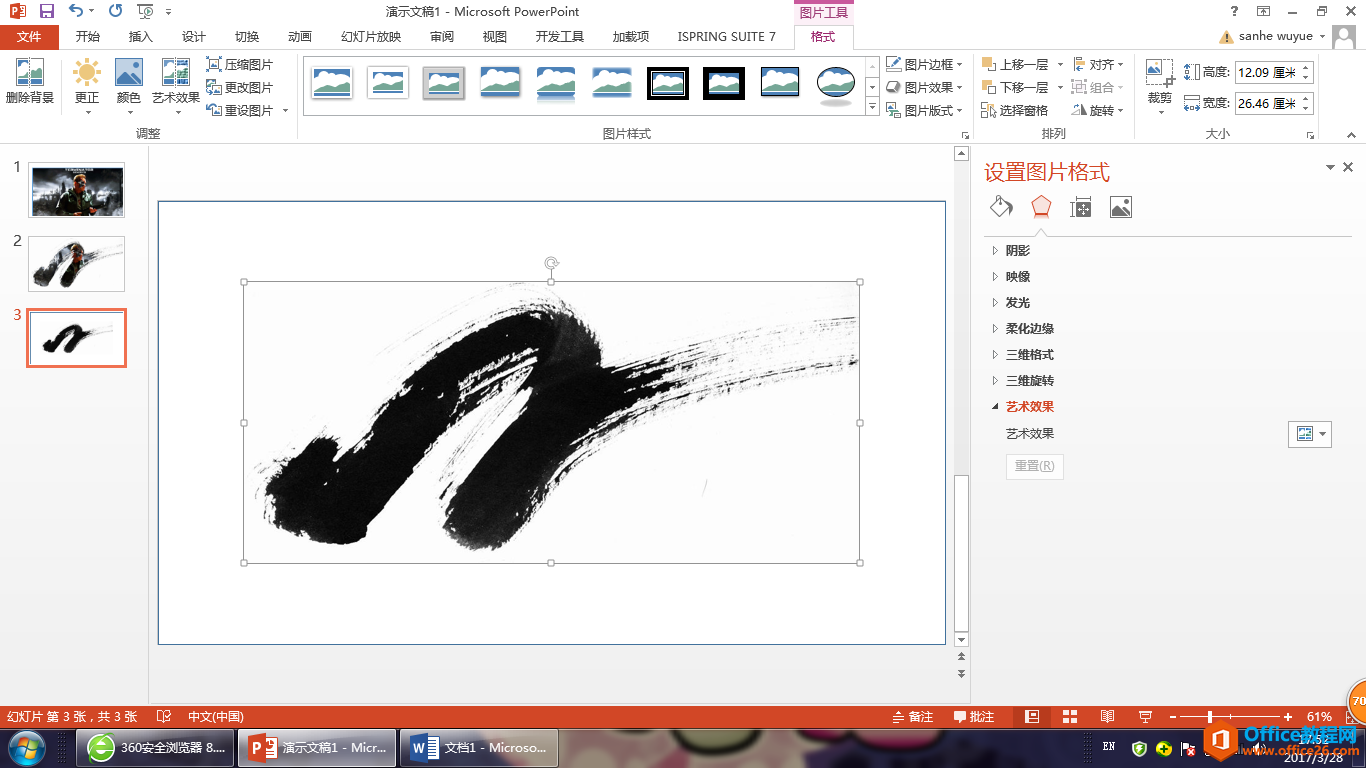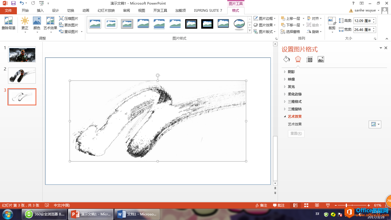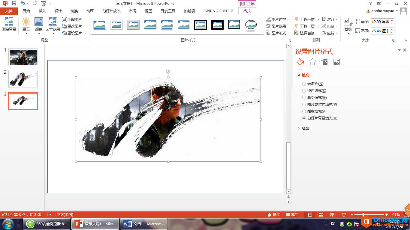 第八步,在图片上右击“设置图片格式”——填充线条——填充——幻灯片背景填充,就可以得到想要的墨水效果图了